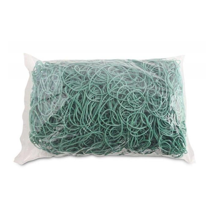 Odolné a pružné gumičky vyrobené z materiálu s prímesou gumy (60 %). Rozmery (hrúbka × šírka) 1,5 × 1,5 mm. Priemer 60 mm. Farba zelená.