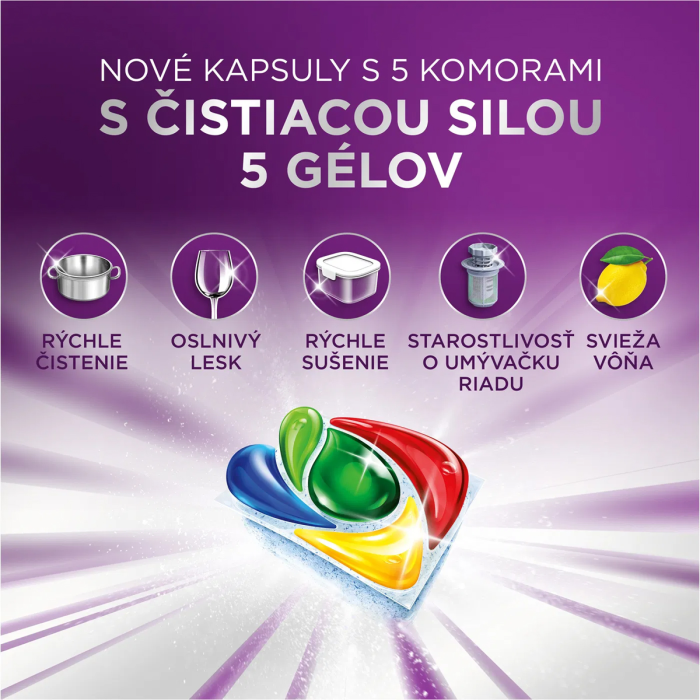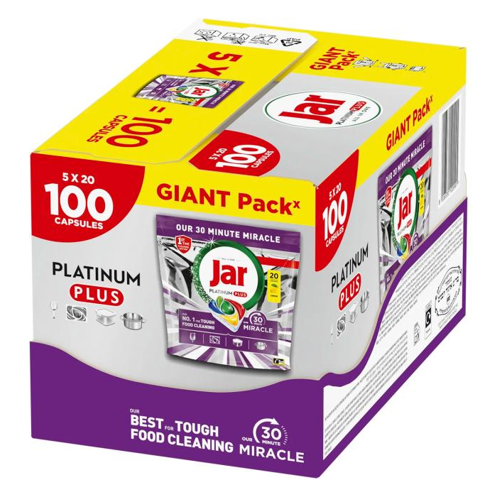 Zázračné riešenie všetko v jednom pre dokonale čistý riad bez námahy. Kapsule do umývačky riadu Jar 30 Minute Miracle Platinum Plus sú navrhnuté na rýchle a maximálne účinné umývanie aj silne znečisteného riadu. Vďaka pokročilej technológii a päťkomorovej kapsuli si poradia so zaschnutými zvyškami jedla už za 30 minút, bez nutnosti predumývania alebo opakovaného umývania. Ideálna voľba pre rušné domácnosti, ktoré chcú perfektný výsledok hneď po prvýkrát.