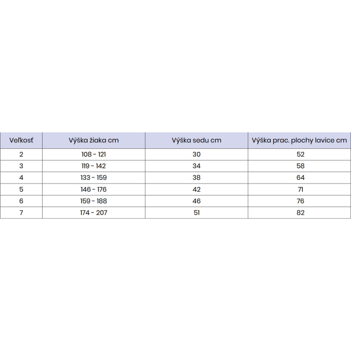 • výška pracovnej dosky je 58 cm, 64 cm a 71 cm
