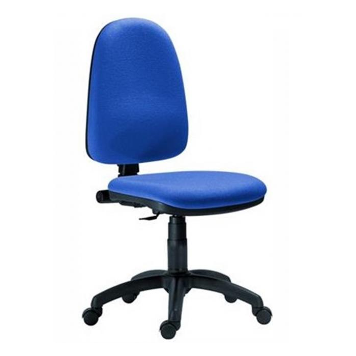 Čalúnená kancelárska stolička s vysokou opierkou.