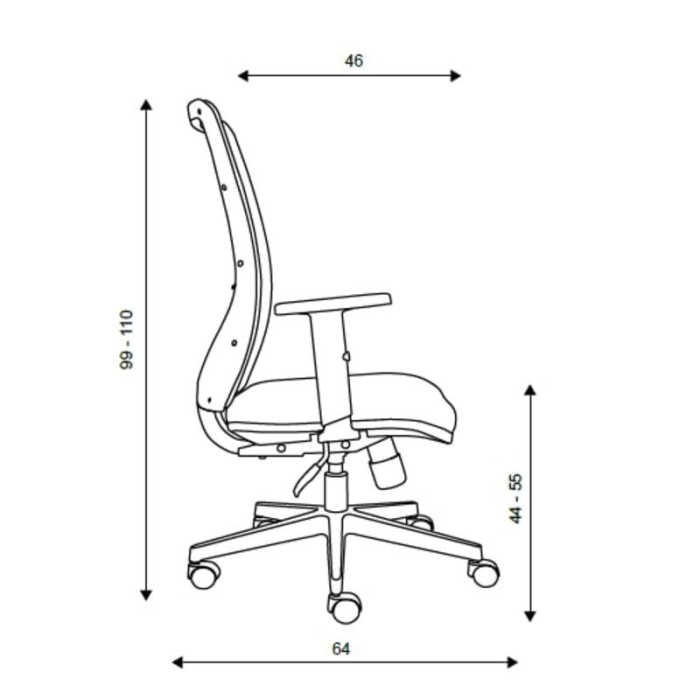 • Rozmery: šírka operadla 44,0 cm; výška operadla: 57,0 cm; šírka sedadla: 51,0 cm; hĺbka sedadla: 46,0 cm; výška sedu: 44,0 - 55,0 cm.