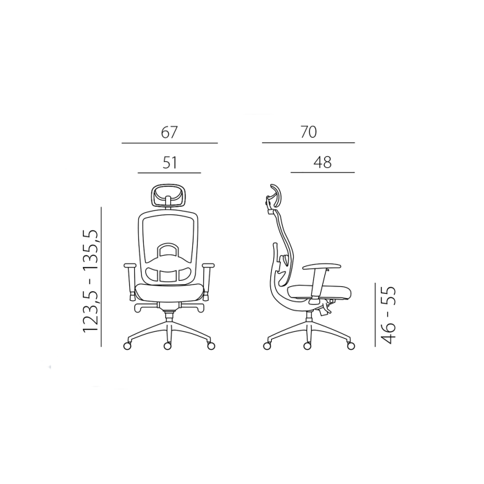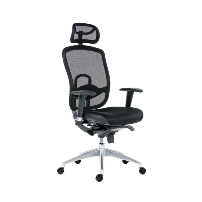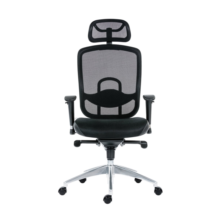 Obľúbené prevedenie kancelárskej stoličky so sieťovinou na operadle a opierke hlavy.