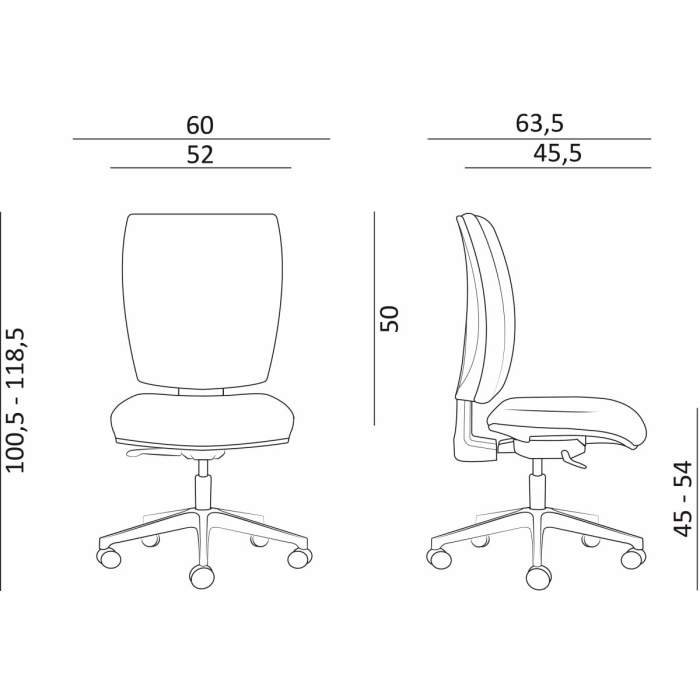 • kancelárska stolička s čalúneným sedákom a operadlom
