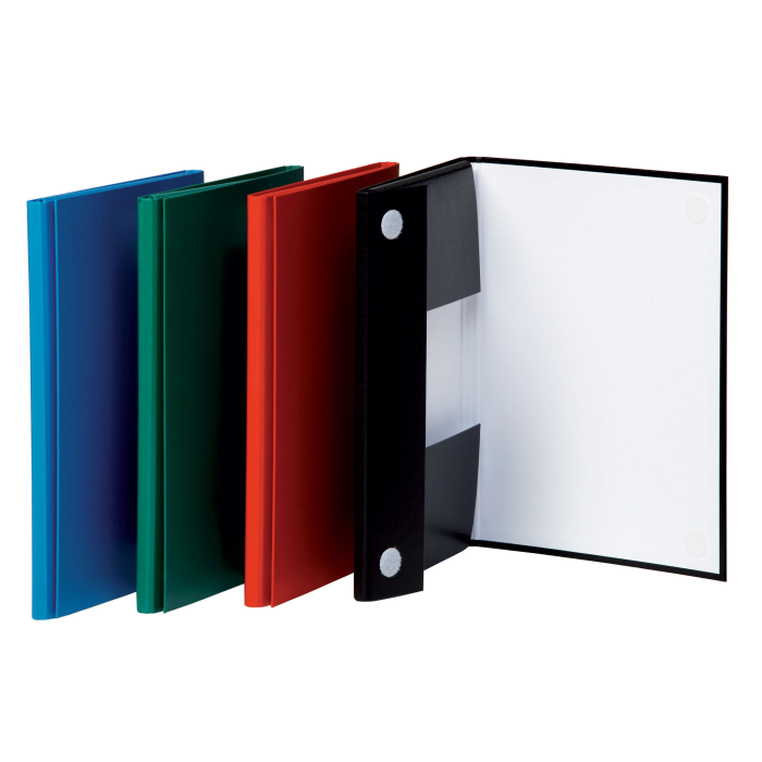 Trojchlopňový box na dokumenty z tvrdeného kartónu. Vonkajšia strana potiahnutá PP fóliou hrúbky 100 um, vnútro biela dyha gramáže 100 g. Uzatvárateľný krúžkami na suchý zips. Kartón hrúbky 1,8 mm. Kapacita 120 listov. Rozmery (š×v×h) 235×315×15 mm.Väčšie balenie 10 ks.