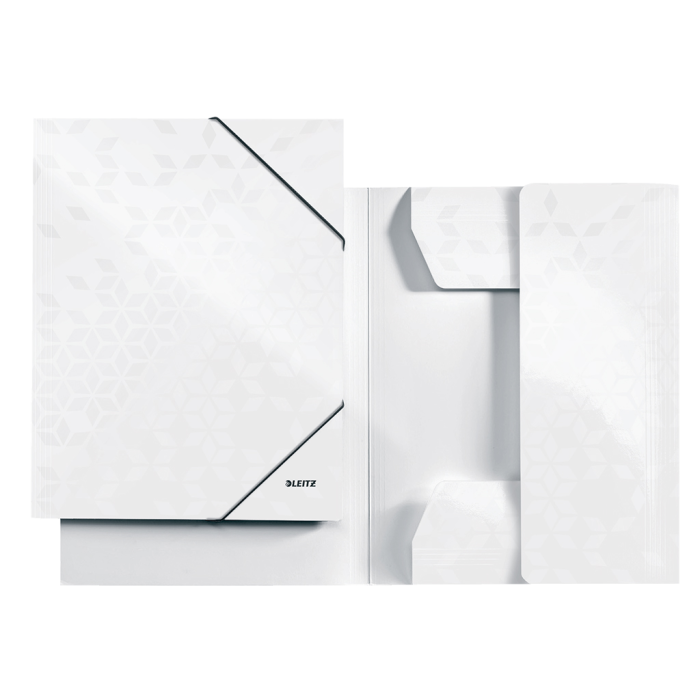 Obal s tromi chlopňami a elastickými gumičkami rady WOW v žiarivej farbe zo špeciálneho kartónu s perfektným farebným efektom. PP laminácia chráni farby a dáva výrobku lesklý vysokokvalitný vzhľad. Farba: perleťovo biela