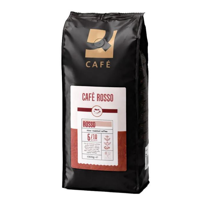 Café Rosso Pomaly pražené kávové zrná, zmes Rosso má výraznú plnú a vyváženú chuť, je to zmes zŕn Arabica a Robusta. Medzi milovníkmi kávy veľmi obľúbená. Pražené celé kávové zrná Vhodné pre plnoautomatické kávovary. Balené v ochrannej atmosfére. Skladujte v chlade a suchu. Pražená a balená v Holandsku, káva z krajín mimo EÚ. Minimálna trvanlivosť - pozri bočnú stranu obalu