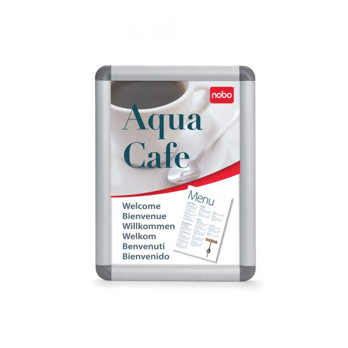 Rám na zobrazovanie informácií, plagátov alebo propagačných ponúk do interiéru aj exteriéru. Mechanizmus otvárania na  klip, antireflexná fólia z PVC na ochranu pred špinou a prachom, vkusný hliníkový rám s tmavosivými rohovými spojkami. Formát - plagát. Rozmery v × š × h : 700 × 1 000 × 17 mm. Dodávaný s montážnou sadou.