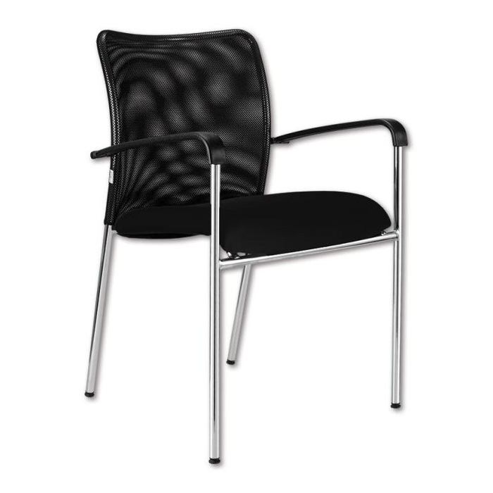• Stohovateľná konferenčná stolička s látkovým sedákom a sieťkovým operadlom moderného dizajnu.