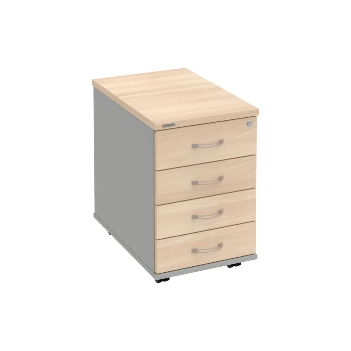 Kontajnery - všetko uložené a vždy poruke. Kontajnery sa väčšinou umiestňujú pod stoly. Mobilné modely sú vybavené kolieskami, je možné ich premiestniť podľa potreby. Základným materiálom korpusov je kvalitná laminovaná drevotriesková doska hrúbky 18 mm. Pre dlhšiu životnosť je na horný diel korpusu použitá doska, ktorej hrúbka je 25 mm. Korpusy a čelá zásuviek sú chránené proti poškodeniu hranou ABS 2 mm. Kontajnery sú vybavené zámkom s centrálnym zamykaním. Vďaka integrovanému systému STOP-CONTROL s centrálnym zámkom u väčšiny kontajnerov sa nemusíte báť prevrhnutiu kontajnera alebo prípadného privretia ruky. Systém zaručí, že pri otvorení jednej zásuvky sa ostatné zásuvky automaticky zablokujú. Zásuvky sú z plastu, ktorý je ľahko umývateľný a vhodný pre jednoduchú údržbu. Praktickou súčasťou vrchnej zásuvky je prehľadný organizér a priestorové deliace priečky. Vaše ceruzky, sponky a ďalšie kancelárske potreby budú vždy na poriadku. Organizér a deliace priečky sú súčasťou každého kontajnera. Na kontajnery Hobis sa vzťahuje päťročná záruka.