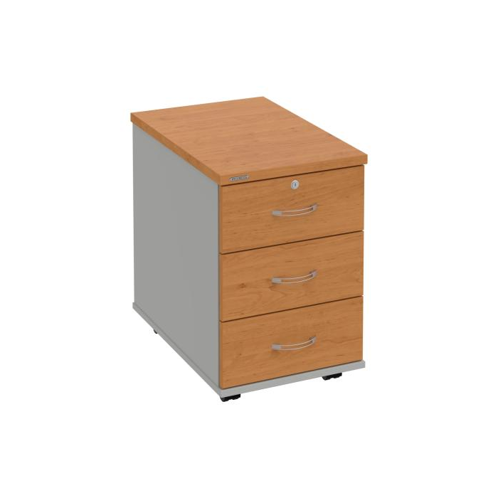 Kontajnery - všetko uložené a vždy poruke. Kontajnery sa väčšinou umiestňujú pod stoly. Mobilné modely sú vybavené kolieskami, je možné ich premiestniť podľa potreby. Základným materiálom korpusov je kvalitná laminovaná drevotriesková doska hrúbky 18 mm. Pre dlhšiu životnosť je na horný diel korpusu použitá doska, ktorej hrúbka je 25 mm. Korpusy a čelá zásuviek sú chránené proti poškodeniu hranou ABS 2 mm. Horná doska ma hĺbku 80. 3-zásuvkový kontajner má uzamykatelnú iba 1 zásuvku. Zásuvky sú z plastu, ktorý je ľahko umývateľný a vhodný pre jednoduchú údržbu. Praktickou súčasťou vrchnej zásuvky je prehľadný organizér a priestorové deliace priečky. Vaše ceruzky, sponky a ďalšie kancelárske potreby budú vždy na poriadku. Organizér a deliace priečky sú súčasťou každého kontajnera. Na kontajnery Hobis sa vzťahuje päťročná záruka.