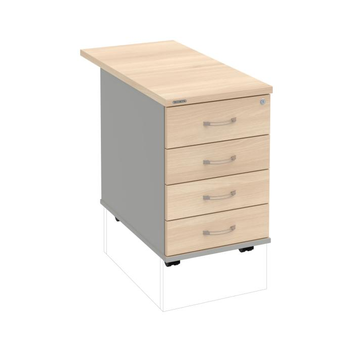 Kontajnery - všetko uložené a vždy poruke. Kontajnery sa väčšinou umiestňujú pod stoly. Mobilné modely sú vybavené kolieskami, je možné ich premiestniť podľa potreby. Základným materiálom korpusov je kvalitná laminovaná drevotriesková doska hrúbky 18 mm. Pre dlhšiu životnosť je na horný diel korpusu použitá doska, ktorej hrúbka je 25 mm. Korpusy a čelá zásuviek sú chránené proti poškodeniu hranou ABS 2 mm. Horná doska ma hĺbku 80 cm. Kontajnery sú vybavené zámkom s centrálnym zamykaním. Vďaka integrovanému systému STOP-CONTROL s centrálnym zámkom u väčšiny kontajnerov sa nemusíte báť prevrhnutiu kontajnera alebo prípadného privretia ruky. Systém zaručí, že pri otvorení jednej zásuvky sa ostatné zásuvky automaticky zablokujú. Zásuvky sú z plastu, ktorý je ľahko umývateľný a vhodný pre jednoduchú údržbu. Praktickou súčasťou vrchnej zásuvky je prehľadný organizér a priestorové deliace priečky. Vaše ceruzky, sponky a ďalšie kancelárske potreby budú vždy na poriadku. Organizér a deliace priečky sú súčasťou každého kontajnera. Na kontajnery Hobis sa vzťahuje päťročná záruka.