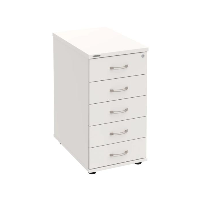Kontajnery - všetko uložené a vždy poruke. Kontajnery sa väčšinou umiestňujú pod stoly. Mobilné modely sú vybavené kolieskami, je možné ich premiestniť podľa potreby. Základným materiálom korpusov je kvalitná laminovaná drevotriesková doska hrúbky 18 mm. Pre dlhšiu životnosť je na horný diel korpusu použitá doska, ktorej hrúbka je 25 mm. Korpusy a čelá zásuviek sú chránené proti poškodeniu hranou ABS 2 mm. Kontajnery sú vybavené zámkom s centrálnym zamykaním. Vďaka integrovanému systému STOP-CONTROL s centrálnym zámkom u väčšiny kontajnerov sa nemusíte báť prevrhnutiu kontajnera alebo prípadného privretia ruky. Systém zaručí, že pri otvorení jednej zásuvky sa ostatné zásuvky automaticky zablokujú. Zásuvky sú z plastu, ktorý je ľahko umývateľný a vhodný pre jednoduchú údržbu. Praktickou súčasťou vrchnej zásuvky je prehľadný organizér a priestorové deliace priečky. Vaše ceruzky, sponky a ďalšie kancelárske potreby budú vždy na poriadku. Organizér a deliace priečky sú súčasťou každého kontajnera. Na kontajnery Hobis sa vzťahuje päťročná záruka.