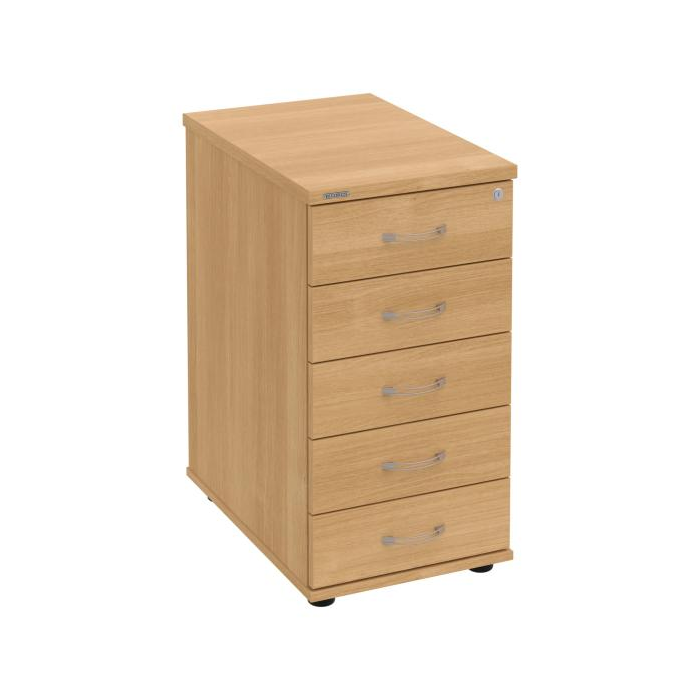 Kontajnery - všetko uložené a vždy poruke. Základným materiálom korpusov je kvalitná laminovaná drevotriesková doska hrúbky 18 mm. Aby sme zaistili dlhú životnosť, použili sme pre horný diel korpusu dosku, ktorej hrúbka je 25 mm. Kvalitnou ochranou proti poškodeniu je tiež 2mm ABS hrana na hornom i spodnom diele korpusu. Vďaka integrovanému systému STOP-CONTROL s centrálnym zámkom u väčšiny kontajnerov (netýka sa ekonomického modulu radu 100.603xy a 100.604xy) sa nemusíte báť prevrhnutiu kontajnera alebo prípadného priškripnutia rúk. Systém zaručí, že pri otvorení jednej zásuvky sa ostatné zásuvky automaticky zablokujú. Zásuvky sú z plastu, ktorý je ľahko umývateľný a vhodný pre jednoduchú údržbu. Čelá zásuviek sú z kvalitnej drevotrieskovej dosky s hrúbkou 18 mm a sú tiež vybavené odolnou 2mm ABS hranou, ktorá garantuje dostatočnú ochranu proti mechanickému poškodeniu. Praktickou súčasťou vrchnej zásuvky je prehľadný organizér a priestorové deliace priečky. Vaše ceruzky, sponky a ďalšie kancelárske potreby budú vždy na poriadku. Organizér a deliace priečky sú súčasťou každého kontajnera. Na kontajnery Hobis sa vzťahuje päťročná záruka.