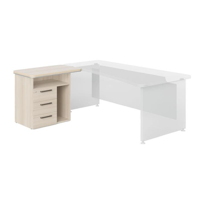 Horná doska prístavného kontajnera sa vyrába z LTD hrúbky 38 mm a je po obvode vybavená dvojfarebnou akrylovou 3D hranou, odolnou proti nárazom. Všetky ostatné diely sú s LTD hrúbky 18 mm. Boky a dno kontajnera sú zabezpečené hranou ABS hrúbky 0,5 mm. Čelá zásuviek sú olepené hranou ABS 2 mm. Kontajner je vybavený centrálnym zámkom. Kontajner je inštalovaný na rektifikačných nôžkach. Kontajner sa vyrába v ľavom i pravom prevedení. Na stoly a kontajnery WELS poskytujeme 3 ročnú záruku. Farebnosť je ilustratívna.