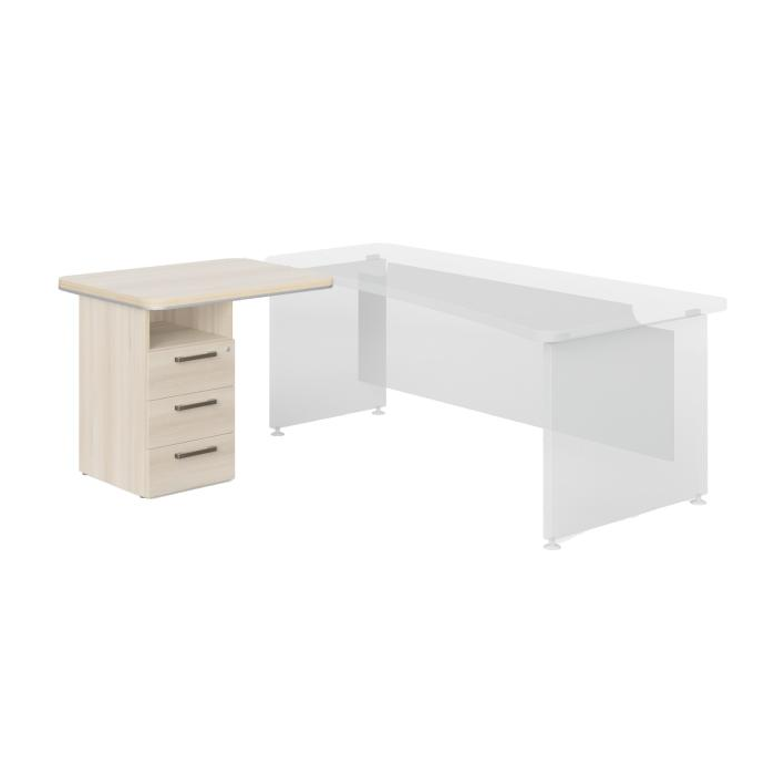 Horná doska prístavného kontajnera sa vyrába z LTD hrúbky 38 mm a je po obvode vybavená dvojfarebnou akrylovou 3D hranou, odolnou proti nárazom. Všetky ostatné diely sú s LTD hrúbky 18 mm. Boky a dno kontajnera sú zabezpečené hranou ABS hrúbky 0,5 mm. Čelá zásuviek sú olepené hranou ABS 2 mm. Kontajner je vybavený centrálnym zámkom. Kontajner je inštalovaný na rektifikačných nôžkach. Kontajner sa vyrába v ľavom i pravom prevedení. Na stoly a kontajnery WELS poskytujeme 3 ročnú záruku. Farebnosť je ilustratívna.