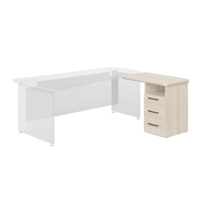 Horná doska prístavného kontajnera sa vyrába z LTD hrúbky 38 mm a je po obvode vybavená dvojfarebnou akrylovou 3D hranou, odolnou proti nárazom. Všetky ostatné diely sú s LTD hrúbky 18 mm. Boky a dno kontajnera sú zabezpečené hranou ABS hrúbky 0,5 mm. Čelá zásuviek sú olepené hranou ABS 2 mm. Kontajner je vybavený centrálnym zámkom. Kontajner je inštalovaný na rektifikačných nôžkach. Kontajner sa vyrába v ľavom i pravom prevedení. Na stoly a kontajnery WELS poskytujeme 3 ročnú záruku. Farebnosť je ilustratívna.