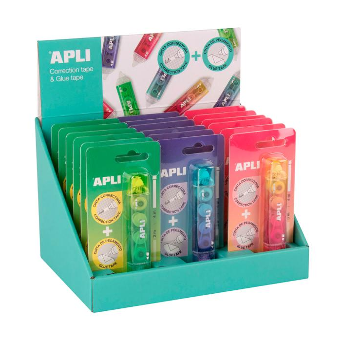 Korekčný roller a lepidlo APLI 2v1, mix farieb