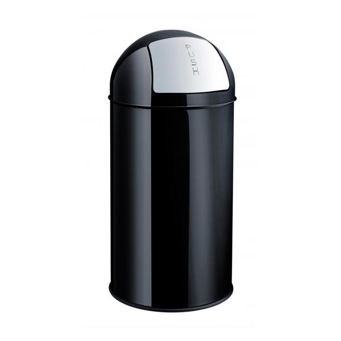 Kôš na papier Helit s pozinkovaným vnútrom. Priemer nádoby 36 cm, výška 74,5 cm. Materiál leštená nerezová oceľ. Objem 50 l. Farba čierna.