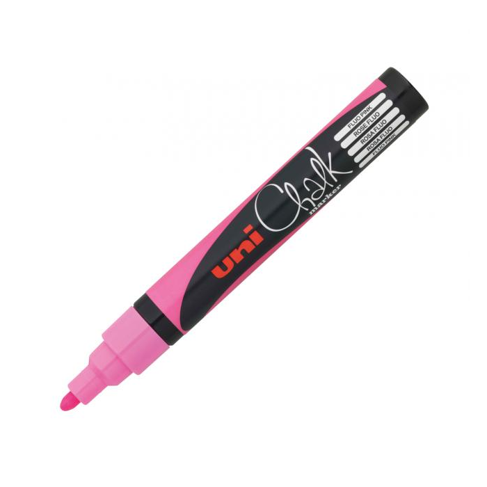 Kriedové popisovače s možnosťou použitia pre priemysel, dekoráciu, informačné tabule a hobby. Na čistých a odmastených neporéznych povrchoch text po zaschnutí odoláva vode a UV, ale je stierateľný vlhkou handričkou. Vhodné na okná, zrkadlá, kovové a plastové povrchy. Hrot guľatý, šírka stopy 1,8 - 2,5 mm. Farba neónovoružový.