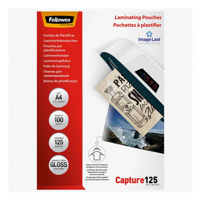 Laminovacie fólie Fellowes kvalitne a dlhodobo ochránia dokumenty pred znehodnotením a vplyvmi prostredia. Vyznačujú sa priezračnosťou a nízkou teplotou potrebnou na laminovanie.