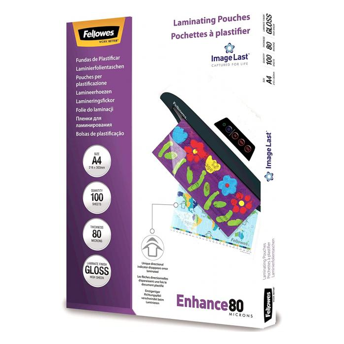 Laminovacie fólie Fellowes kvalitne a dlhodobo ochránia dokumenty pred znehodnotením a vplyvmi prostredia. Vyznačujú sa priezračnosťou a nízkou teplotou potrebnou na laminovanie.