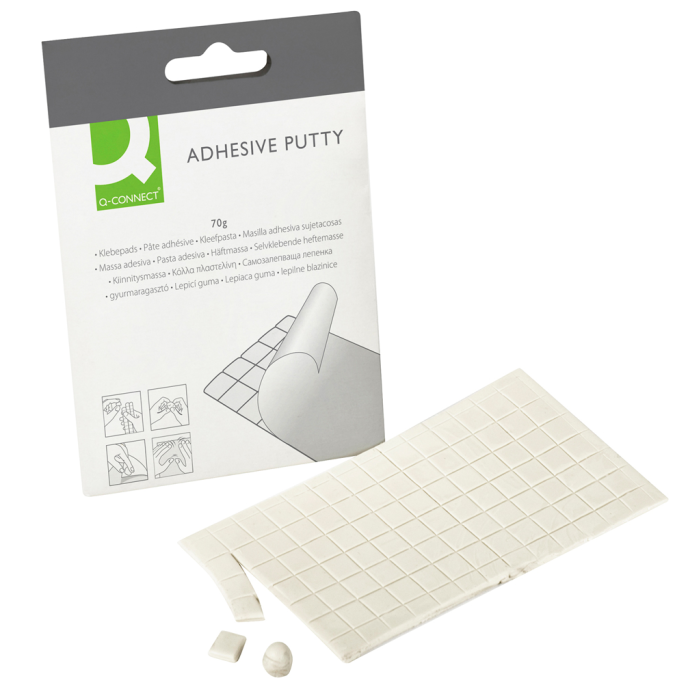 Biela lepiaca montážna guma v štvorčekoch. Čisté, bezpečné a jednoduché použitie. Vhodná alternatíva k pripináčikom a lepiacej páske s mnohonásobným použitím. Ideálna na plagáty a iné materiály. Balenie 80 kusov.