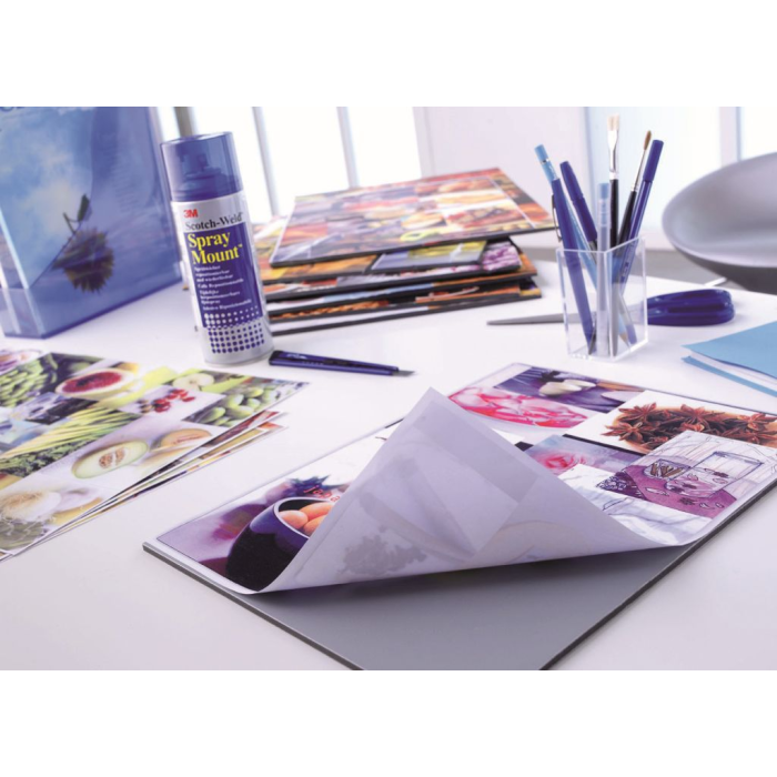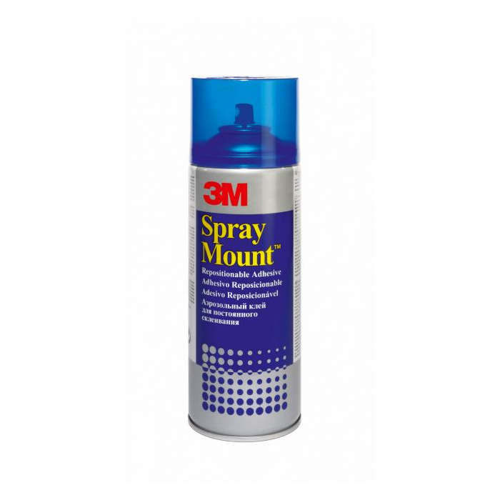 - 3M™ SprayMount™ je ideálna voľba pre umenie a dizajnový trh. Kľúčovou výhodou je možnosť premiestňovania lepených materiálov.