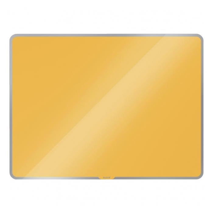 Sklenená magnetická tabuľa na písanie Leitz Cosy je nástroj na písanie poznámok, ktorý možno používať opakovane. Píšete jednoducho pomocou priloženej suchej fixky, potom stačí zotrieť a začať znovu. Povrch je vyrobený z tvrdeného bezpečnostného skla s ultra stierateľnosťou a vysokou odolnosťou proti atramentovým fľakom, zvyškom po fixkách, poškriabaniu a preliačeninám. Vďaka minimalistickému dizajnu bez rámu a príjemným farbám pridáte svojmu pracovnému priestoru štýl a farbu.Jednoduchá montáž vďaka skrytému 4-rohovému montážnemu systému a montážnej súprave (2 skrutky a 2 hmoždinky). Rozmery 60 x 80 cm. Farba teplá žltá. Dodáva sa s handričkou z mikrovlákien na jednoduché čistenie a s čiernym popisovačom na suché stieranie, ktorý má na viečku vstavaný čistiaci kus. Magnetický popisovač drží priložený kdekoľvek na tabuli. Odporúčame občasné vyčistenie, aby sa zabezpečilo, že povrch tabule zostane dokonalý.