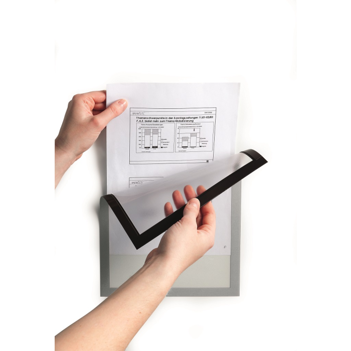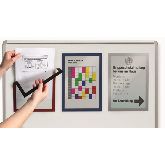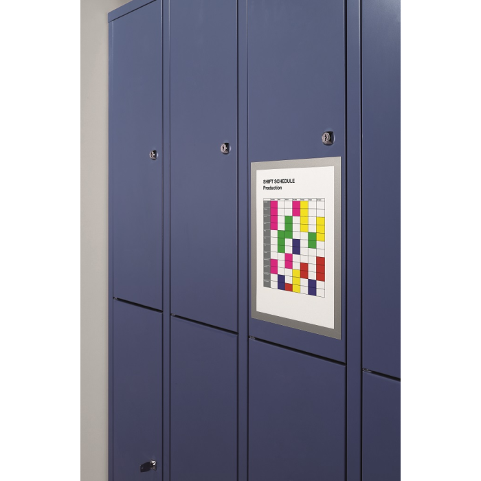 Informačný panel s magnetickou časťou na zadnej strane rámika na jednoduché a rýchle vkladanie informácie formátu A4. Vhodný na hladké magnetické povrchy, napr. magnetickú tabuľu. Farba strieborná. V balení 5 ks.