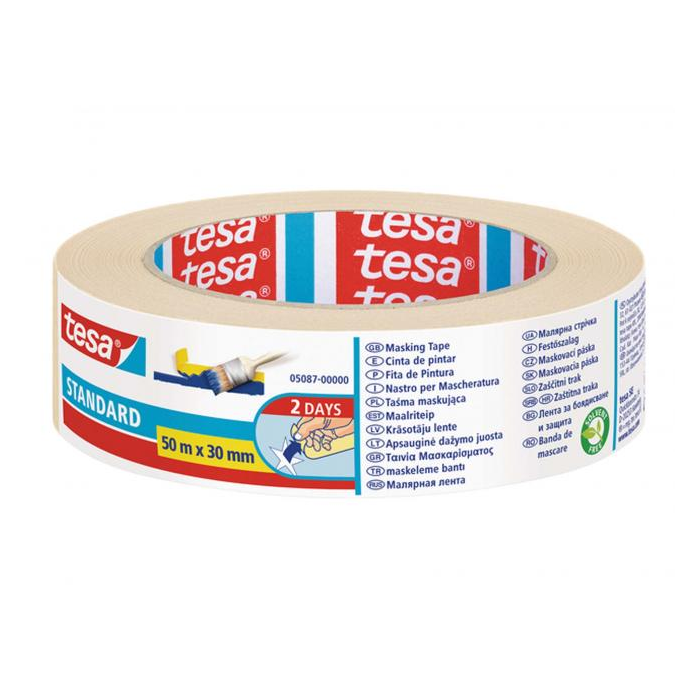 Viacúčelová papierová páska na univerzálne použitie pre základné maliarske práce a maskovanie. Odstrániteľná do 2 dní bez zanechania stôp lepidla. Rozmery 30 mm × 50 m.