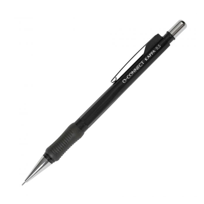 Plastová mikroceruzka s kovovou špičkou, výsuvnou vodiacou trubičkou vedenia tuhy a gumou pod stláčacím uzáverom. Hrúbka 0,5 mm, dodávané v mixe farieb bez možnosti výberu. Väčšie balenie 12 kusov (6 čiernych/6 modrých). Náhradná náplň obj. kód QC001547.