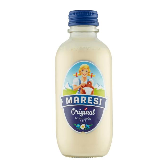 VÝŽIVOVÉ ÚDAJE/JEDNOTKA: Výživové údaje na 100g: Energia 520 kJ/125 kcal, Tuky 7,5g, z toho nasýtené mastné kyseliny 4,7g, Sacharidy 8,4g, z toho cukry 8,4g, Bielkoviny 5,9g, Soľ 0,22g. Referenčný príjem priemernej dospelej osoby (8400kJ/2000kcal). Hmotnosť: 250 g, objem: 236 ml. Príprava a použitie: Po otvorení skladujte v chladničke a spotrebujte do 7 dní. PODMIENKY SKLADOVANIA: Skladujte pri izbovej teplote, chráňte pred priamym slnečným žiarením. VÝROBCA: MARESI Foodbroker, s.r.o. Viktorínova 1 821 08 Bratislava Slovenská republika.