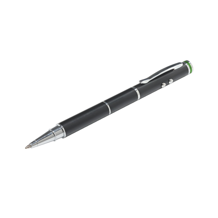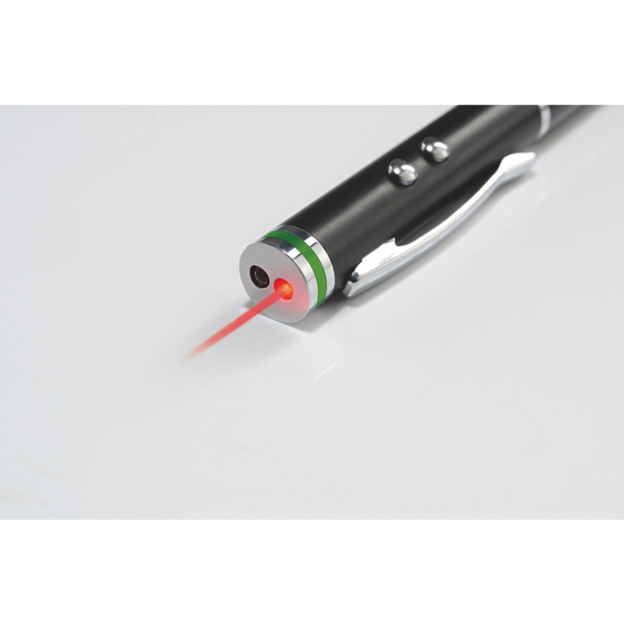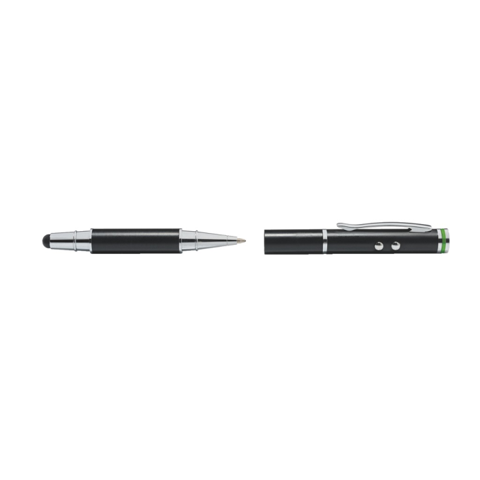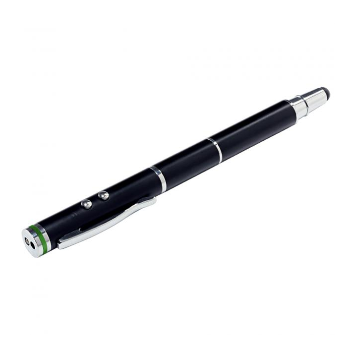 Stylus pre dotykové obrazovky so 4 funkciami slúži aj ako guľôčkové pero, laserové ukazovadlo a vreckové LED svietidlo. Mäkký silikónový hrot chrániaci pred poškriabaním, vysokokvalitné pero s vymieňateľnou náplňou. Súčasťou balenia sú 3 batérie typu LR41. Farba čierna.
