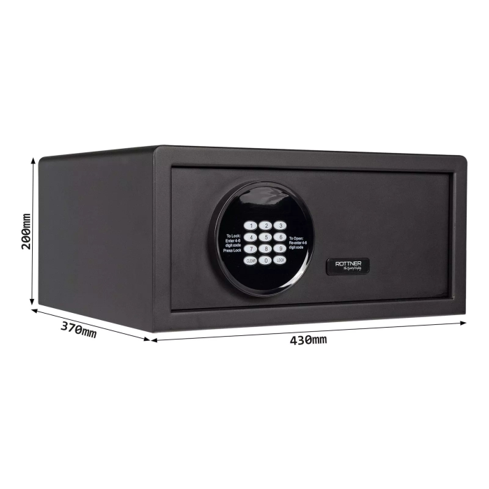 Nábytkový sejf Rottner Aurora Lap ponúka ideálne riešenie na bezpečné uloženie cenností vašich hostí. Či už ide o pasy, hotovosť, vstupenky alebo notebooky tento hotelový sejf spoľahlivo ochráni všetky spomínané predmety a je vybavený elektronickým zámok s jednoduchým ovládaním. V prípade núdze možno sejf otvoriť pomocou hlavného kódu aj pomocou kľúča, aby sa hosť nemusel obávať, že v prípade zabudnutia kódu nebude môcť sejf otvoriť. Po zatvorení sa na 5 sekúnd zobrazí kód hosťa.
