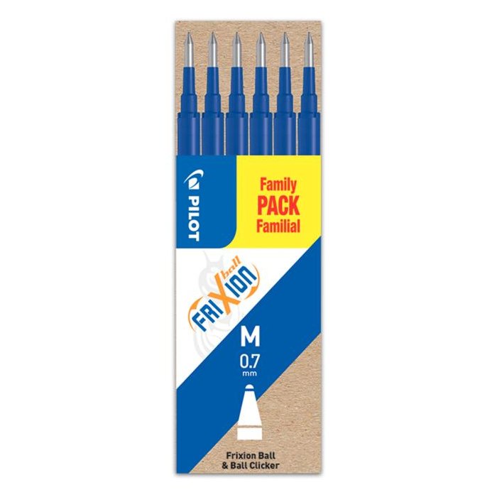 Náplň s prepisovateľným atramentom do rollerov Pilot FriXion Clicker, FriXion Ball. Balenie 6 ks. Nápľň modrá.