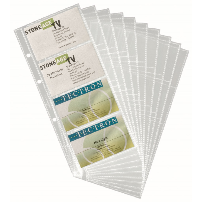 Náhradné priehľadné obaly na 80 vizitiek do vizitkárov Visifix DU238558, DU238507 a DU244101 a VISIFIX PRO DU246158. V balení 10 obalov.