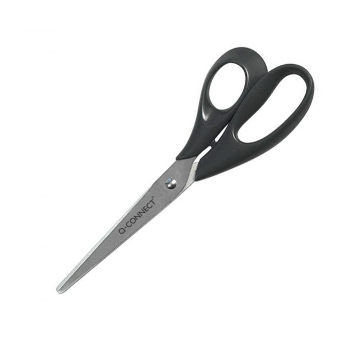 Univerzálne kancelárske nožnice na strihanie papiera, kartónu, lepenky, samolepiacej pásky a pod. so strihacou časťou z nehrdzavejúcej ocele. Farba čierna. Veľkosť: 21 cm.