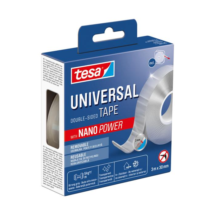 Obsah balenia: 1 x rolka tesa® Univerzálna Nano Power obojstranná montážna páska