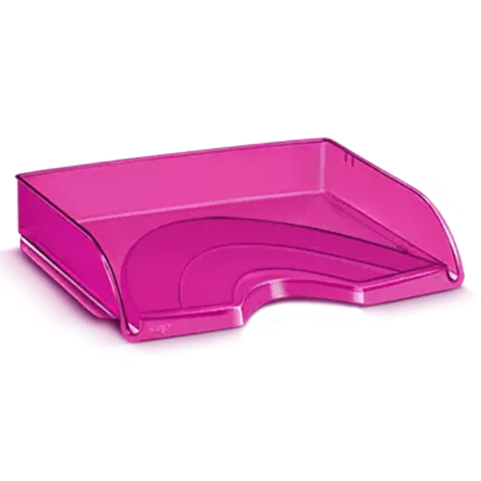 Elegantný odkladač s možnosťou vertikálneho stohovania alebo stohovania stupňovito dozadu. Široký otvor vpredu umožní ľahký prístup k dokumentom a ich triedenie. Je vhodný na dokumenty do veľkosti 24 × 32 cm. Celkové rozmery 341 × 265 × 65,4 mm, kapacita 420 listov (80 g / m²). Materiál 100% odolný vysokokvalitný plast. Väčšie balenie 10 ks. Farba transparentná ružová.