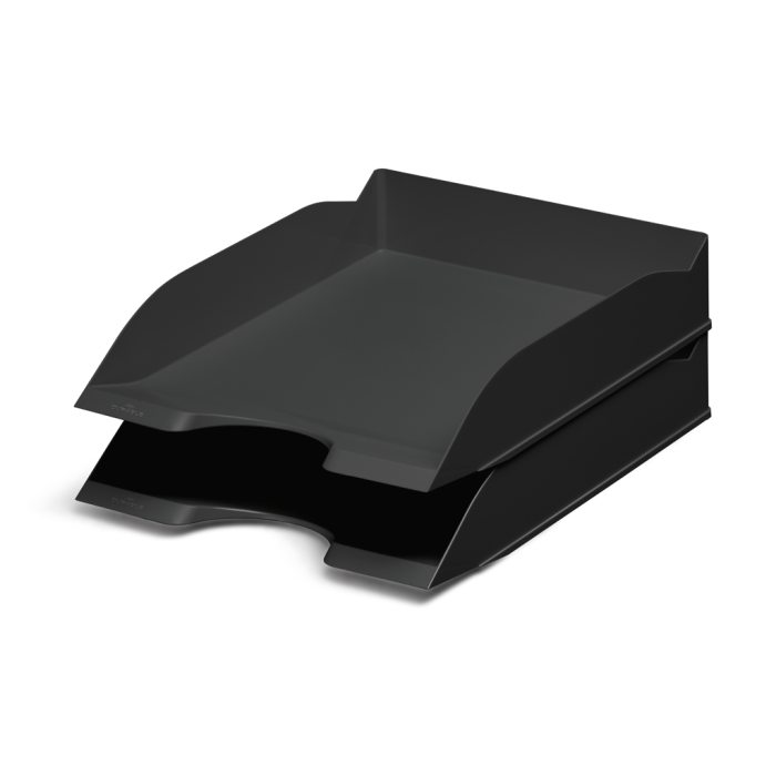 Stohovateľný buď zvisle alebo odsadene. Predná strana zabraňuje vykĺznutiu dokumentov. Pre formáty A4 až C4.