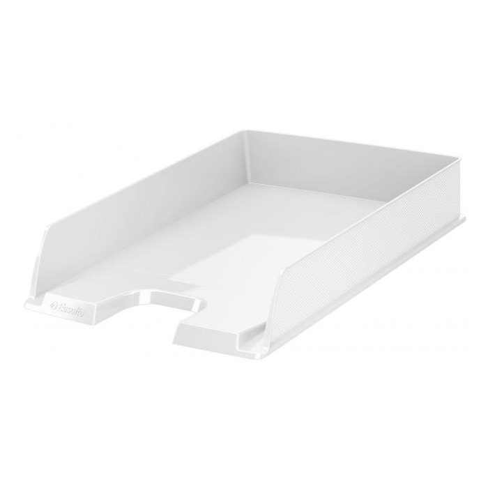 Moderný odkladač na uloženie dokumentov formátu A4 s unikátnym embosovaným povrchom po boku odkladača a v sviežich farbách radu Esselte VIVIDA. Možnosť kolmého alebo predsadeného stohovania, zaoblený výrez pre jednoduchší prístup k dokumentom. Materiál polystyrén. Rozmery 254 × 350 × 61 mm. Farba biela.