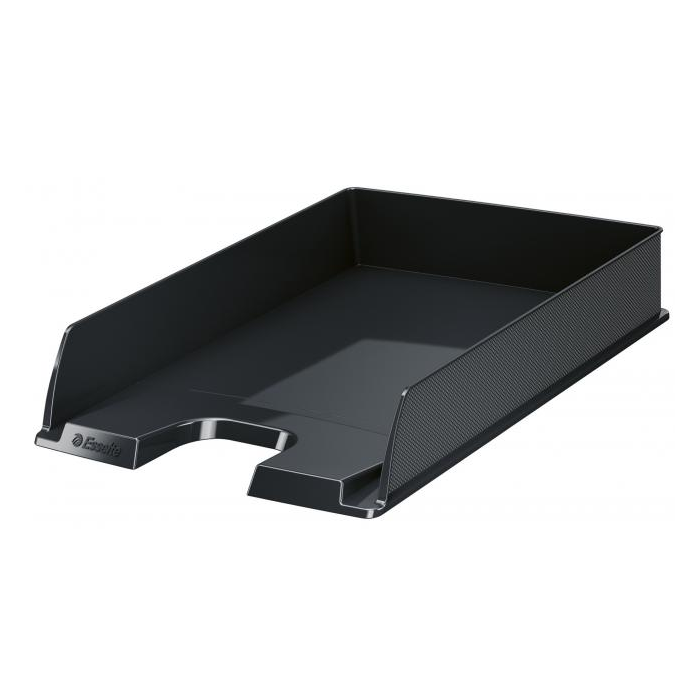 Moderný odkladač na uloženie dokumentov formátu A4 s unikátnym embosovaným povrchom po boku odkladača a v sviežich farbách radu Esselte VIVIDA. Možnosť kolmého alebo predsadeného stohovania, zaoblený výrez pre jednoduchší prístup k dokumentom. Materiál polystyrén. Rozmery 254 × 350 × 61 mm. Farba čierna.