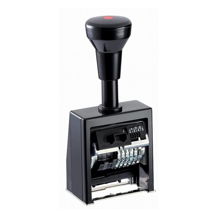 6-miestna paginovacia číslovačka zo špeciálnej zliatiny. Výška číslic 5,5 mm. Opakované potláčanie: 0×, 1 - 6×, 12× a 20 ×. Náhradná poduška E/H57.