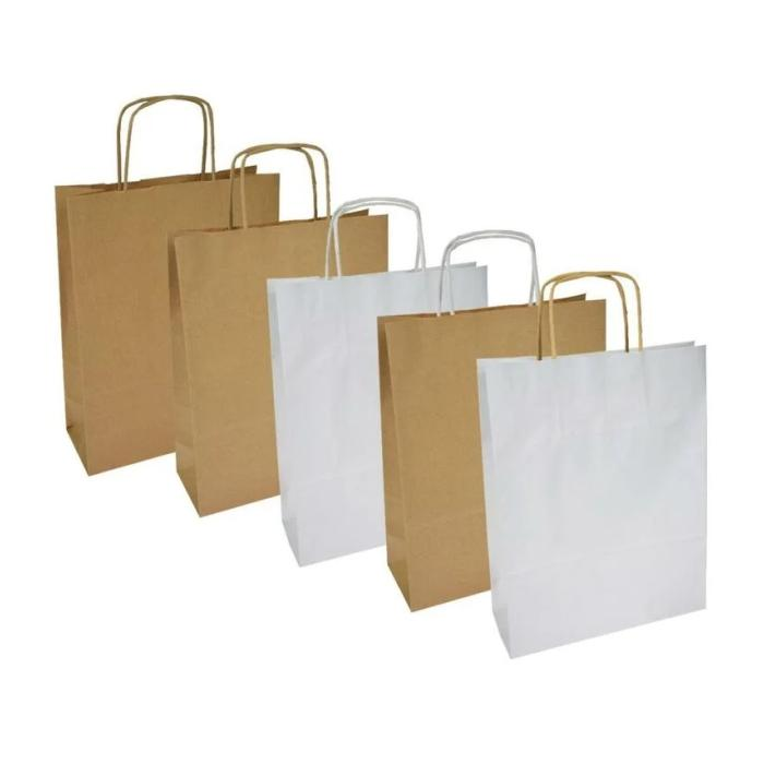 Papierová taška na univerzálne použitie. Farba biela. Ušká stáčané. Cena za kus. Papier 100 g. Rozmery v mm