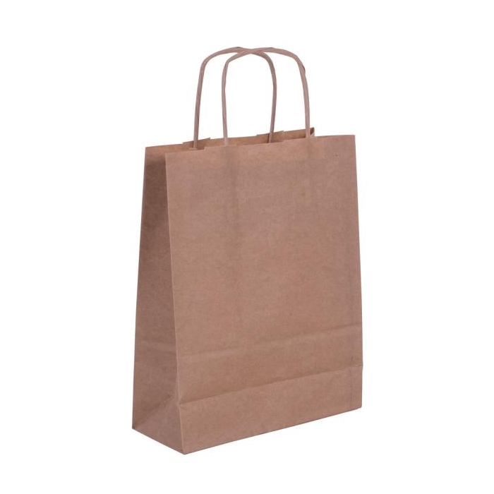 Papierová taška, stáčané ušká, 180x80x240mm, hnedá