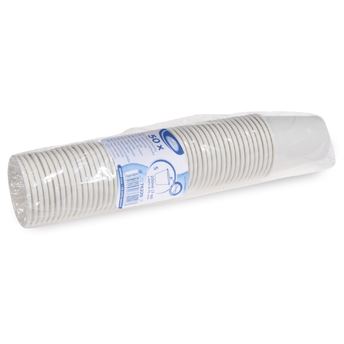 Jednorazové papierové poháre. Objem 200 ml, vhodné pre nápoje s objemom 0,18l, dodávané hygienicky balené po 50 ks. Farba biela.