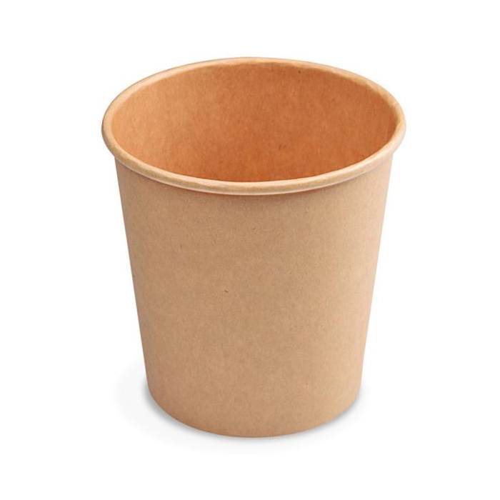 Papierové poháre v prírodnej hnedej farbe sú vyrobené z pevnej lepenky. Vnútro pohára je potiahnuté vrstvou bioplastu PLA proti presakovaniu. Poháre sú biologicky odbúrateľné a vhodné pre nápoje s teplotou medzi -25 ° C a 100 ° C.
