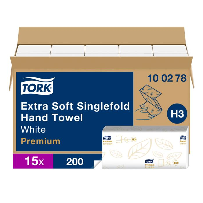 Potešte svojich hostí jemnými prémiovými Tork Singlefold papierovými utierkami, ktoré sú hebké k rukám s pocitom vysokej kvality. Utierky sú vhodné v náročnom prostredí do zásobníka Tork Singlefold na papierové utierky. Pomáha udržať spotrebu pod kontrolou a propagovať dobrú hygienu vďaka spoľahlivému dávkovaniu po útržkoch.