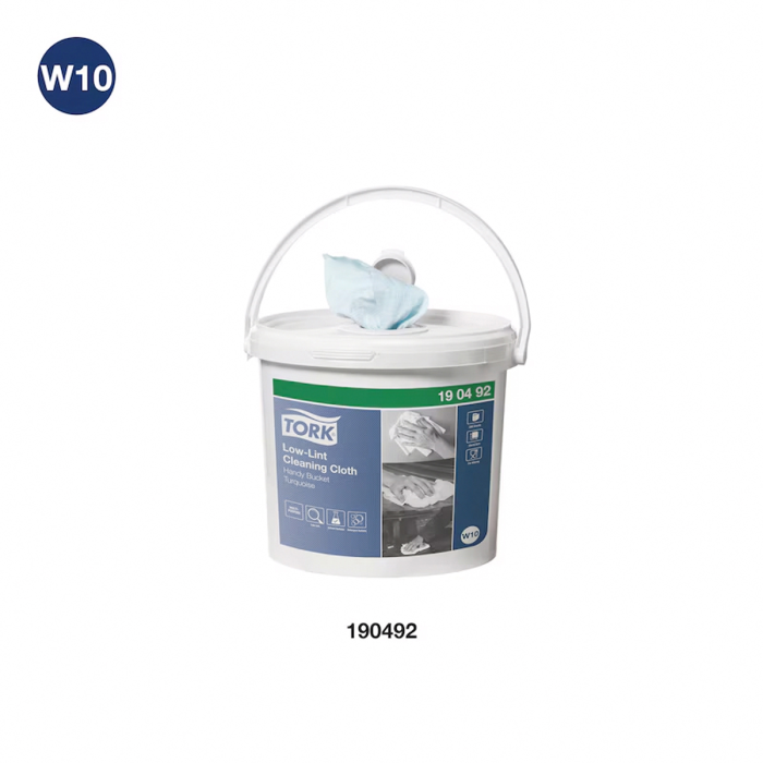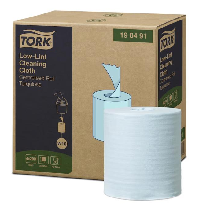 Tork Low-Lint čistiaca utierka je pevná a pružná. Utierky sa dodávajú ako náplň do zásobníka v kotúči, čo umožňuje vytvoriť vlastné vlhčené utierky s použitím požadovaných chemikálií. Jednorazové dávkovanie a jednoducho uzatvárateľné veko zabraňujú vyschn