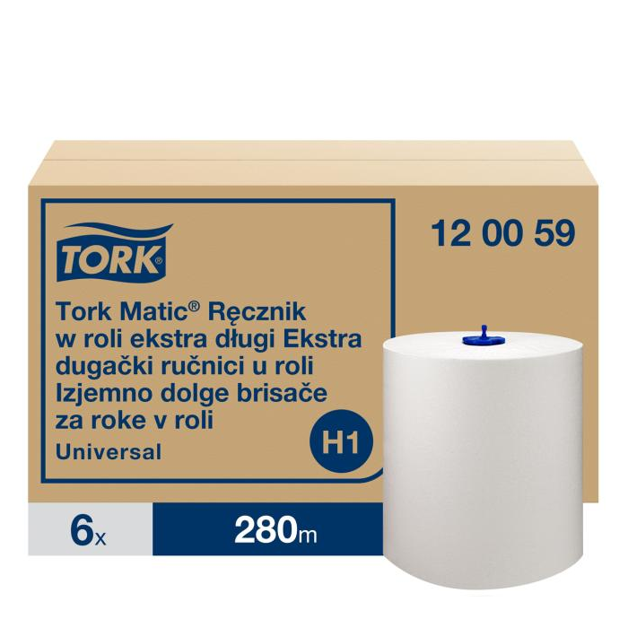 Papierové utierky v rolke 1-vrstv. TORK Matic extra dlhé biele H1, návin 280 m (6 ks)